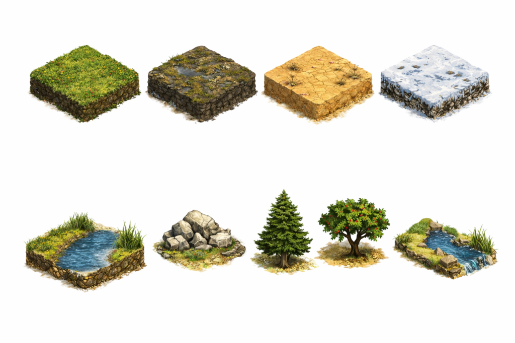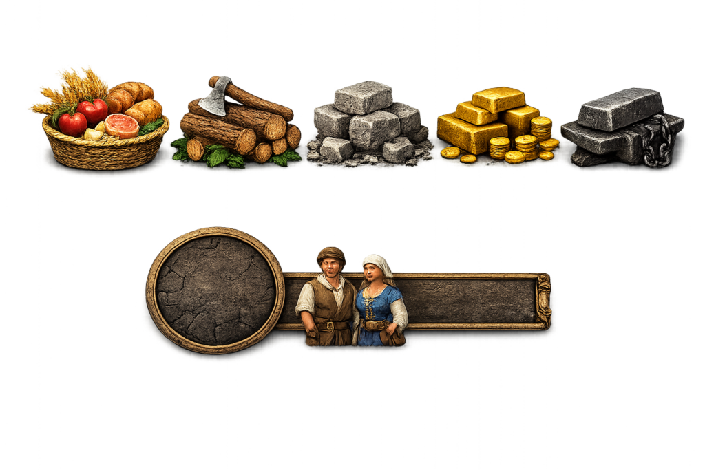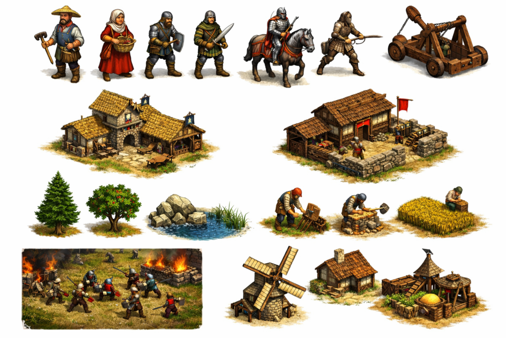 - Gestion des ressources : nourriture, bois, pierre, or, fer.