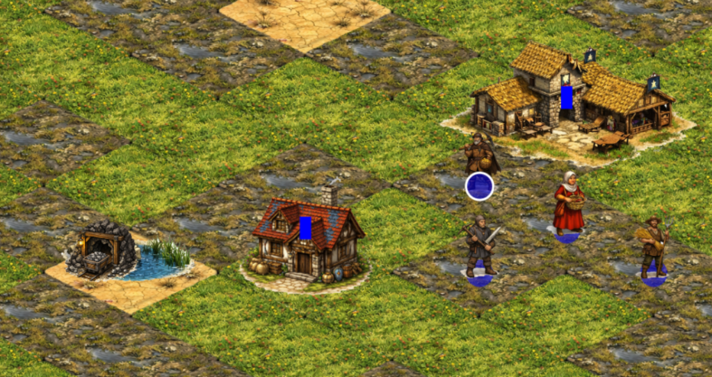 - Unités et stratégie : paysans, mineurs, marchands, soldats.